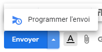 4 – Maintenant au lieu de cliquer sur « Envoyer », cliquez plutôt sur la flèche pour dérouler le menu qui y est proposé. Cliquez sur « Programmer l’envoi ».