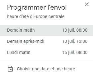 6 – Si les paramètres par défaut ne vous arrangent pas, choisissez les vôtres. Lorsque vous êtes satisfaits de vôtre programmation, envoyez cliquez sur « Programmer l’envoi ».