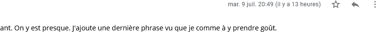 NB : Vous pouvez vous amuser à ce jeu à vous envoyer un courriel programé à vous-même. Ainsi vous verrez à quel moment votre destinataire (vous-même le cas échéant) reçoit son courriel. Dans ce cas allez dans la boîte de réception et vous verrez que vous courriel programmé et envoyé le même jour a été reçu comme tout courriel.