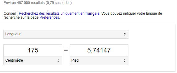 Tu peux par la même méthode lui demander l’équivalent de ta taille en mesure anglosaxone.
