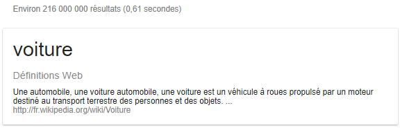 Google peut définir des mots pour toi. La syntaxe est : define:mot.