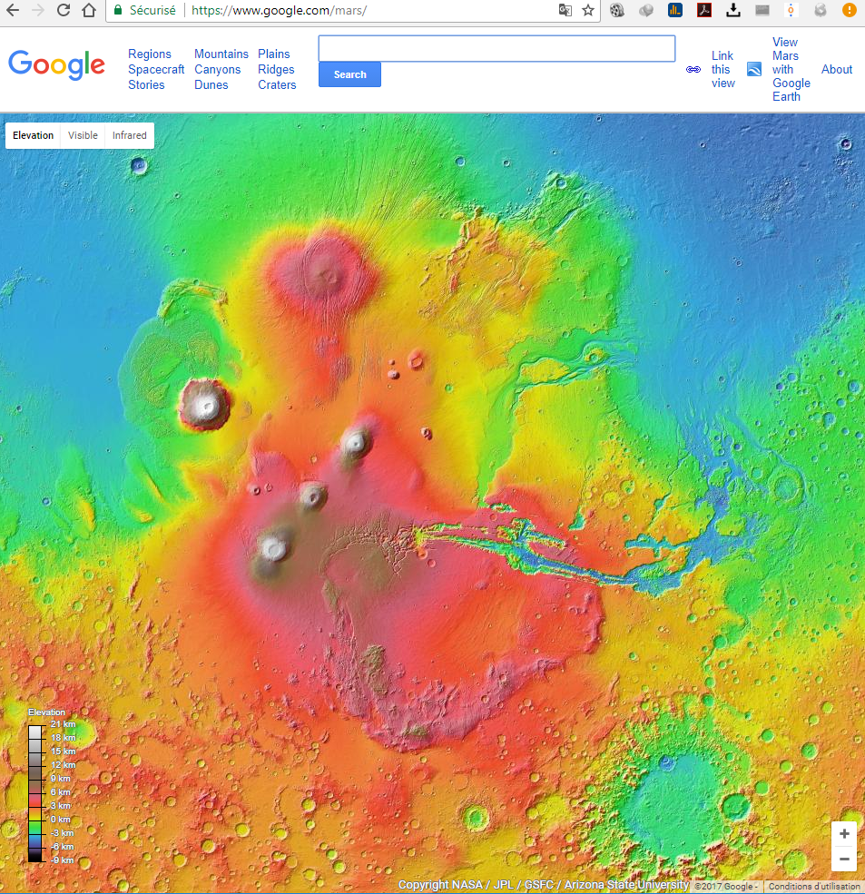 Allons sur Mars en saisissant directement dans la barre d’adresse google.com/mars.