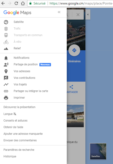 Parfois on a besoin de donnée géographiques sur un emplacement de la planète. Google Maps est quasi parfait pour cela. Il suffit de saisir google maps dans Google Search et de cliquer sur Google Maps. Un champ de recherche s’affiche sur la gauche.