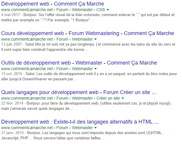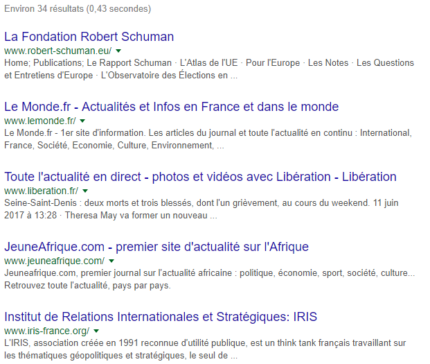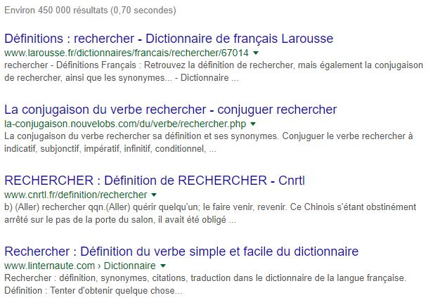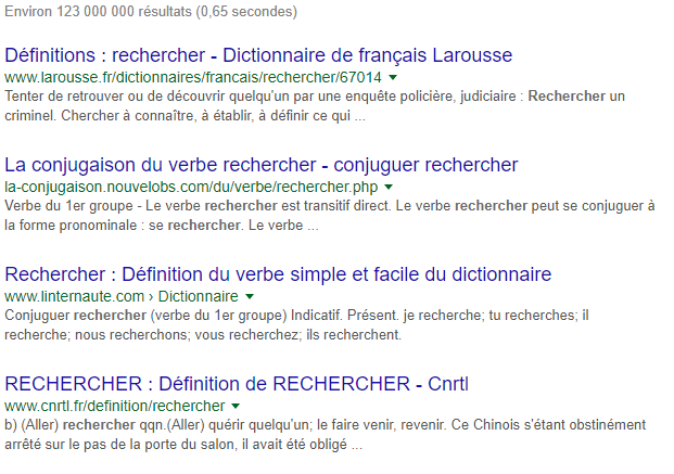 Observons le résultat ci-dessus, relatif à cette requête. Nous constatons rapidement qu’il faut arriver au résultat numéro trois pour avoir une réponse proche de ce que vous recherchez. Pourtant dans votre requête, vous pensiez être extrêmement précis.