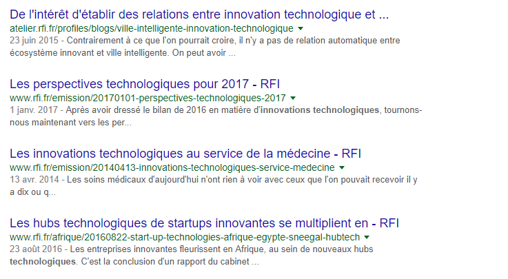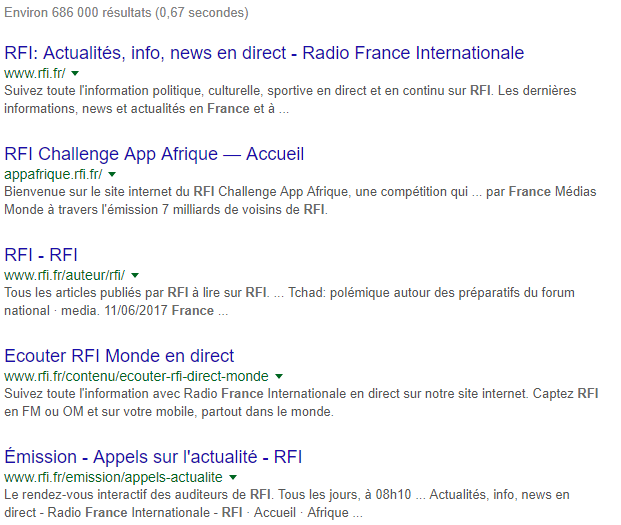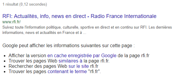 Tous tes résultats sont uniquement issus du site dont tu donnes l’url. Le cas échéant rfi.fr.
